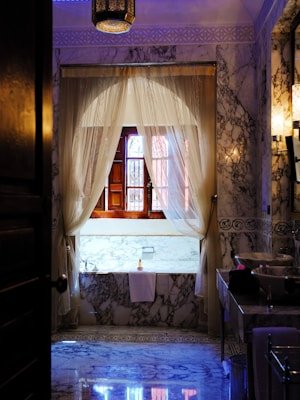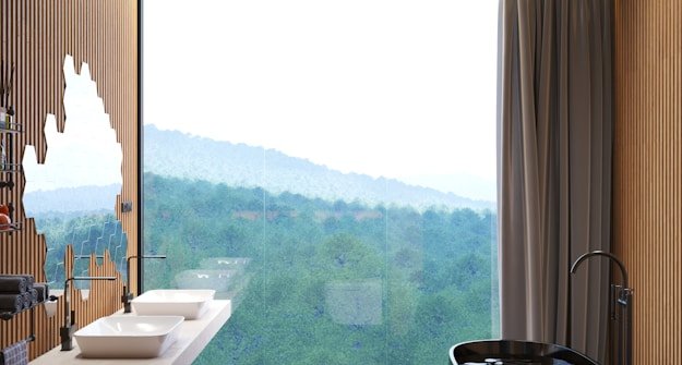 Transform your bathroom into a calming spa with soft lighting and natural textures.